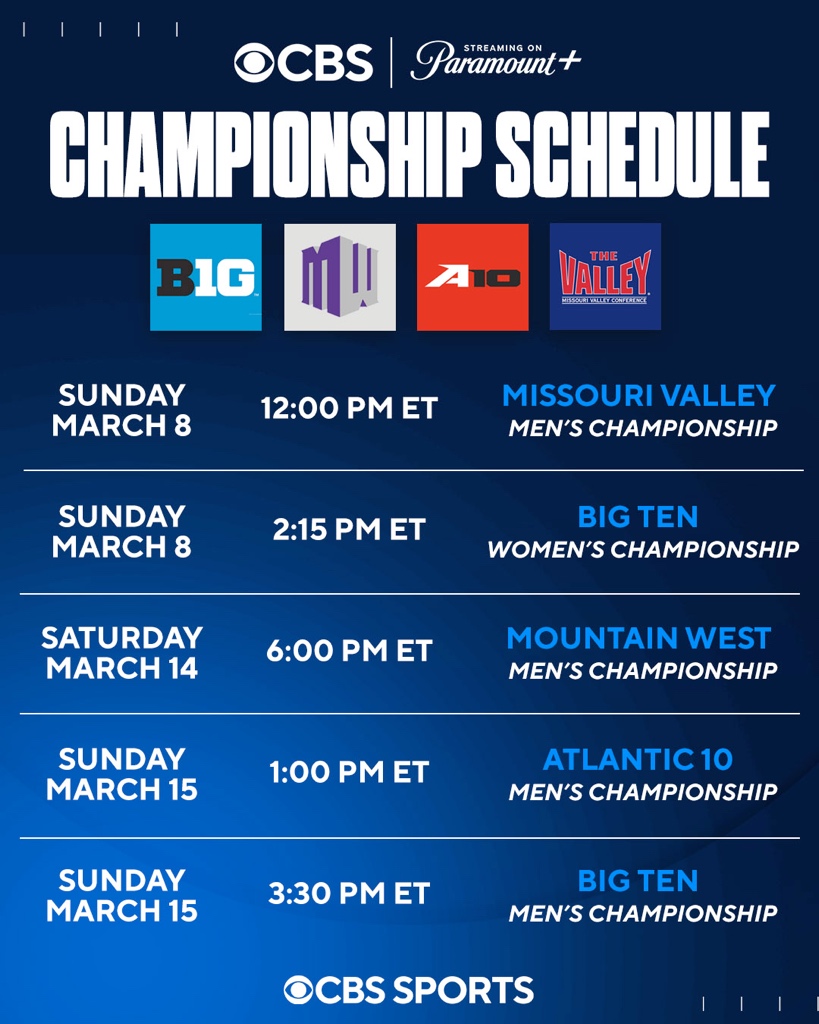 Conference tournament action tips off on CBS Sports beginning this Saturday with 39 games from nine different conferences, concluding with Selection Sunday on March 15. In total, 15 automatic bids to the NCAA Division I Men’s and Women’s Basketball Tournaments will be awarded across the CBS Television Network and Paramount+, as well as CBS Sports Network.