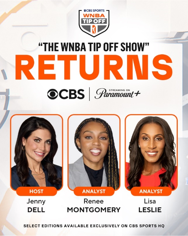 THE WNBA TIP OFF SHOW, the Network’s pregame, halftime and postgame studio show, is back and will expand to support 10 matchups including six shows airing on CBS and Paramount+ and four digital-exclusive editions available via CBS Sports HQ. The show will also welcome Naismith Basketball Hall of Famer Lisa Leslie as analyst and CBS Sports reporter Jenny Dell as host, joining analyst Renee Montgomery.